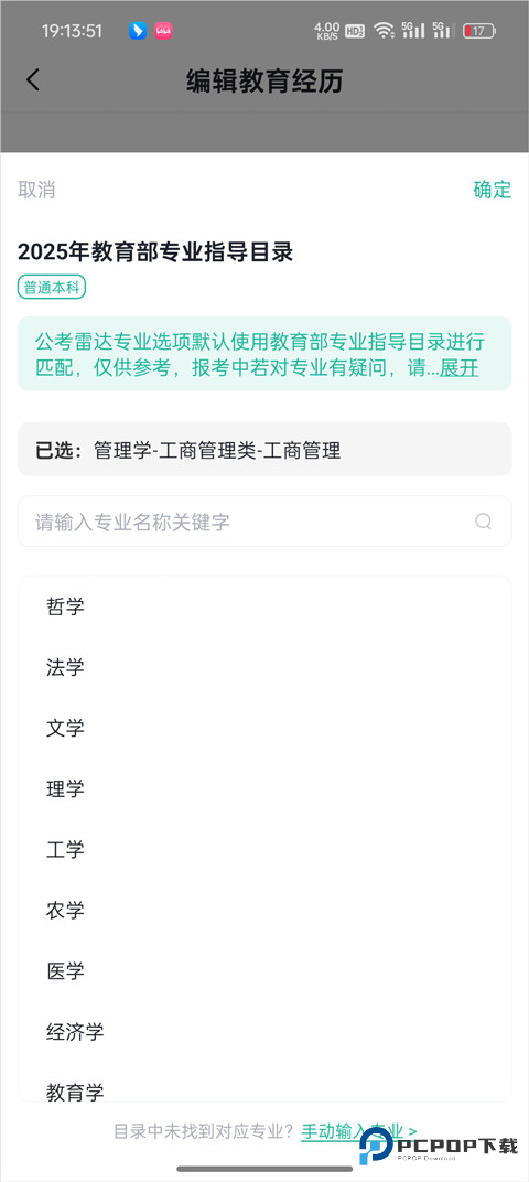 3、来到编辑教育经历页面,点击专业选项右侧的“箭号”按钮;