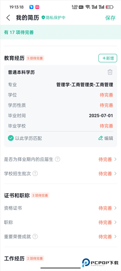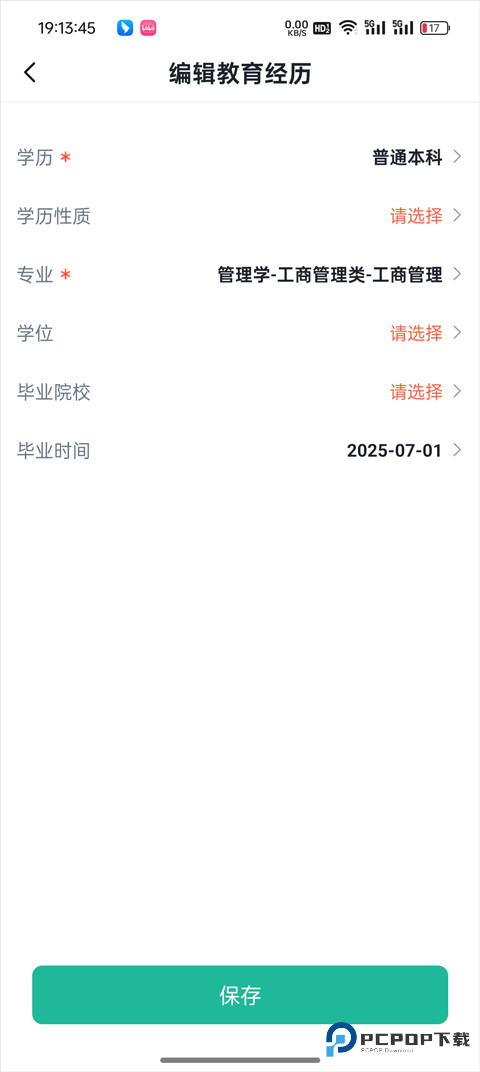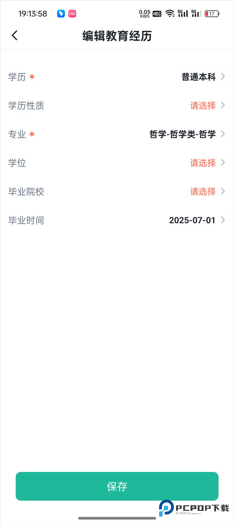 5、最后回到编辑教育经历页面,可以看到专业已经选择成功了,点击下方的“保存”按钮即可修改成功。