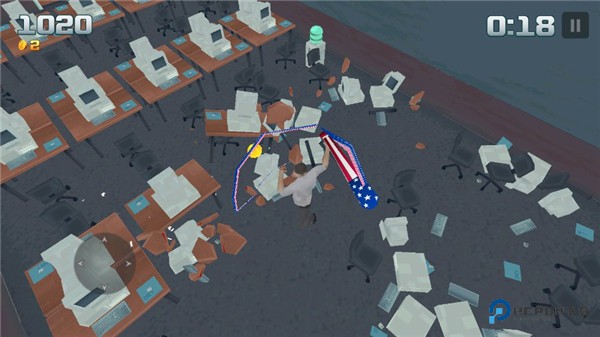 3、玩家们在游戏中除了捣毁掉办公室的东西之外还要注意躲避开一些障碍物,我们哟啊一边躲避障碍物一边来造成大量的破坏,这样才能在不被伤害的情况下获得更多的经验和得分,这一点很关键。