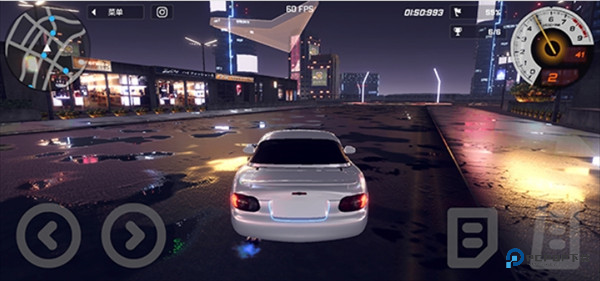 5、进入游戏后我们可以看到屏幕的按钮,左边的是可以控制车辆左右的按钮,右边的是刹车和油门按钮;