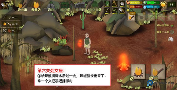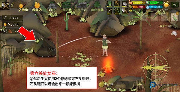 3、然后生火使用2个鞭炮即可石头砸开,石头砸开以后会出来一颗辣椒树。