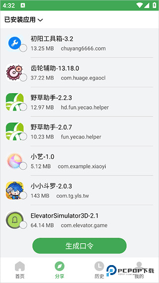 5、电视与手机互连后可以对电视上和手机上的应用进行口令生成分享操作
