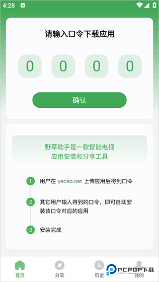 1、首先电视和手机上都安装了对应的野草助手app,然后打开手机上的app输入口令