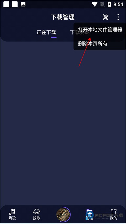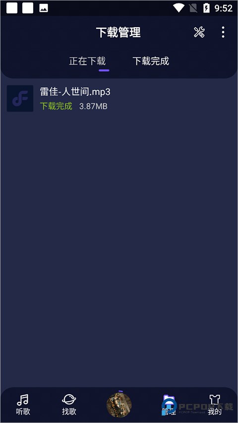 用户还可以前往【管理】页面中的【下载完成】列表中进行查看已经下载好的音乐