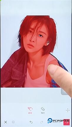 3、在画笔状态下,我们可以用手指在画面上涂抹,被选中成为红色的部分即会被抠出来,成为前景。