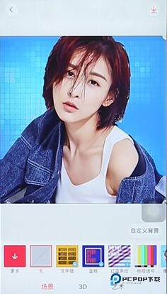 6、再点击自定义背景进入图库,选择一张你想要作为抠图背景的图片,根据需要调整前景图片的大小及位置。
