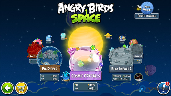 愤怒的小鸟太空版(AngryBirdsSpace)是采用卡通画风的休闲物理弹射益智游戏。游戏以在重力的环太空环境为背景,玩家将操控小鸟通过弹弓弹射出去,攻击一群坏猪的堡垒。期间花费的小鸟越少,破坏的物品越多,分数也就越高。愤怒的小鸟太空版HD官方正版下载里玩家能够挑战关卡,获取更多的成就。在这个版本里有导向射击式的激光鸟和区域结冰的冰鸟等新角色扩充了小鸟的队伍,让玩家体验新的挑战。