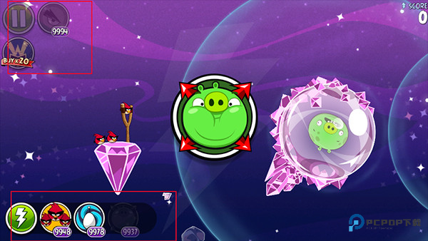 太空爆弹鸟(原黑色的炸弹鸟)是深藏不露的高手,可是一旦发威,就会一鸣惊人!知道这是什么意思了吧,是的,这种愤怒的小鸟可以爆炸!你只需要在恰当的时机轻触屏幕,小鸟就会像地雷一般爆炸!攻击范围和力度都是相当可怕的。所以你一定得在该爆炸的时候才能让它爆,稍不注意,可能就会错过最佳良机!这种愤怒的小鸟什么都能毁坏,所以好钢一定要用在刀刃上,最优先选择炸混凝土结构!