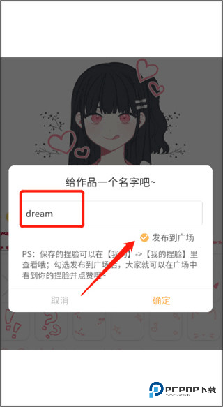 2、在跳出的页面给作品命名,勾选发布到广场选项就可以发布自己的作品了;