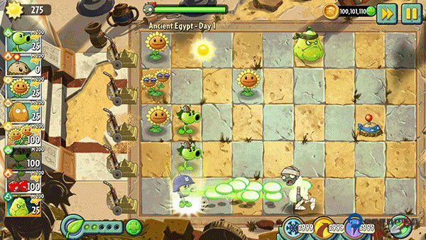 神秘埃及:背景设定在古埃及,玩家需要在金字塔、神庙等古迹中建立植物防线。