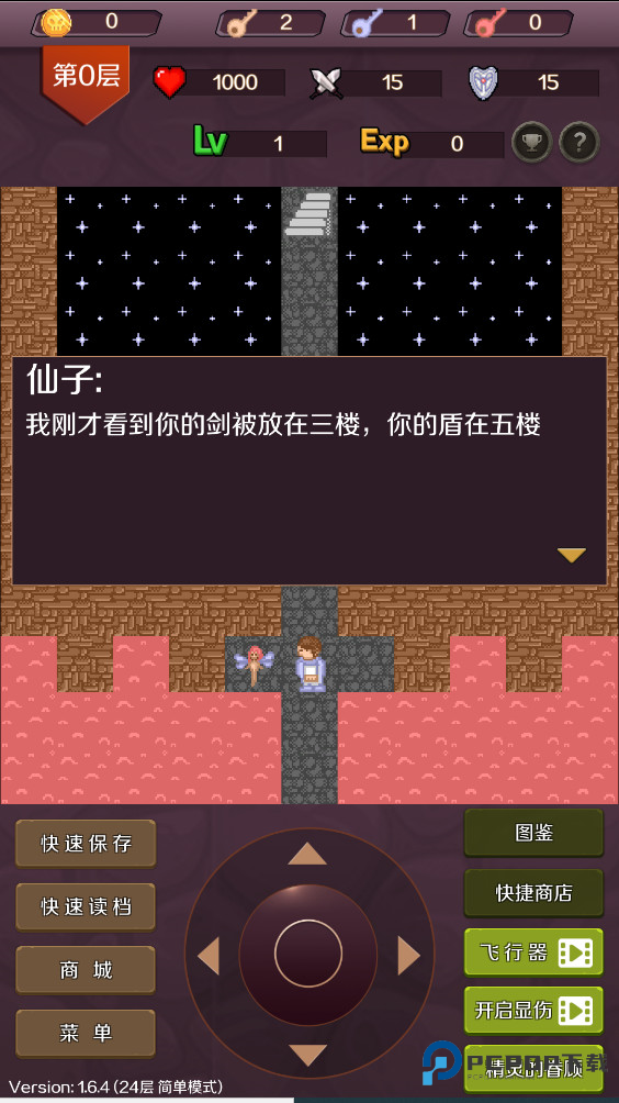 5、铁剑、盾:攻击、防御+10。铁剑在5楼,铁盾在9楼。