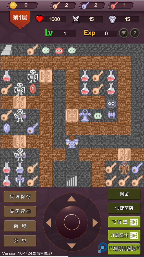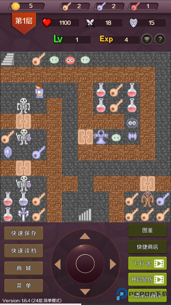 魔塔50层手机版是采用像素经典画风的动作格斗冒险游戏。游戏具备攻击、防御、生命、金币、经验等的属性,玩家对怪物的伤害次数计算公式,是敌人的生命。魔塔50层手机版下载围绕三种不同颜色的钥匙来进行,每一种颜色钥匙只能打开对应颜色的门。同时玩家需要到魔塔的最顶层去拯救公主,期间要找到自己失落的武器和装备提升自己的属性去挑战boss,成功拯救公主。