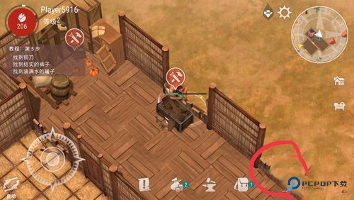 2、走到每个物体旁边,都会有一个图标,点击下方对应的按钮,进行对应的操作,从修理、砍伐、拾取东西……