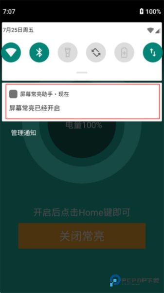 1、打开App,点击开启常亮,开启后点击Home键即可;