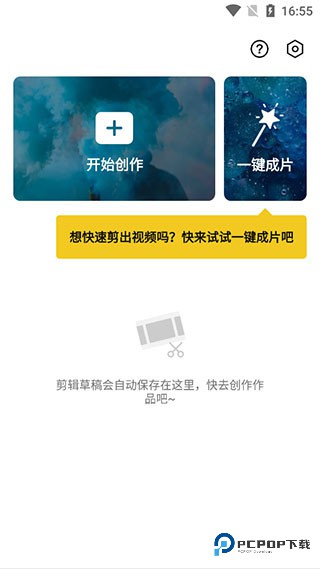 1、下载本站文件安装后打开CapCut中文版,首页简洁干净;