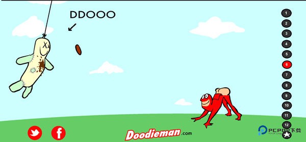 2、设置好后,点击右侧1-12按钮,玩家可操纵大便超人释放大便攻击人偶;