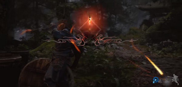 2、其次是防御模式,演示中它可以挡掉远程的箭矢攻击并缓慢前进,最后以一下挥击做为收尾,是一种偏向防守反击的体态。