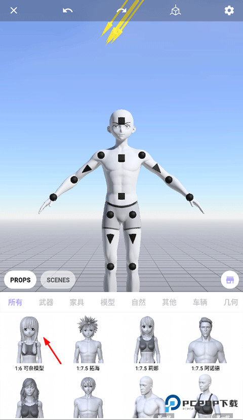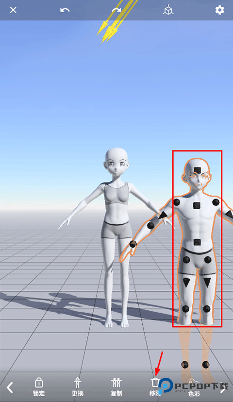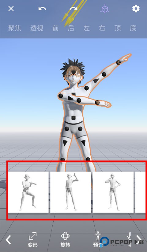3、拖住建模身上的点,就能使其改变肢体动作。