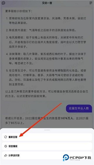 3、还可以选择重新回答,人工智能会重新思考给出不一样的答案,对于满意的回答也可以分享给他人。
