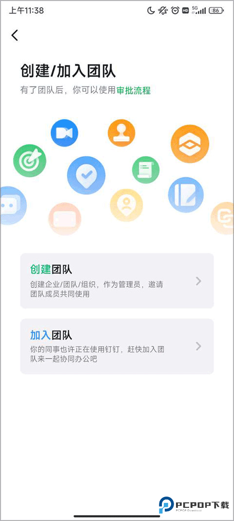1、下载安装好钉钉打卡app,在钉钉通讯录中点击创建团队。