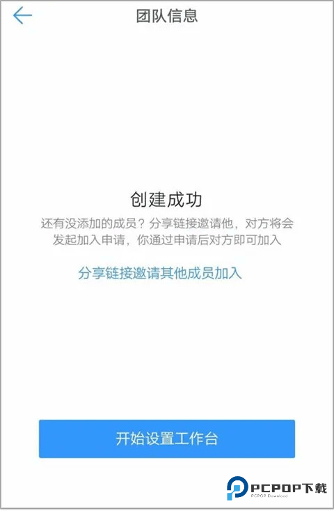 4、之后在创建成功的提示页面,点击下方的开始设置工作台。