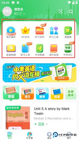 3、课本模块就是该年级所有的科目,里面还分为非常多的小功能。