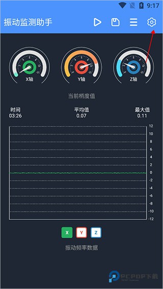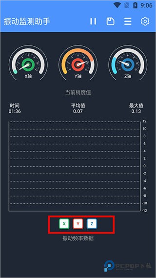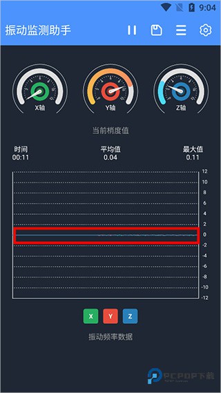 2、接着用户就可以看到xyz不同方向的震动数据线