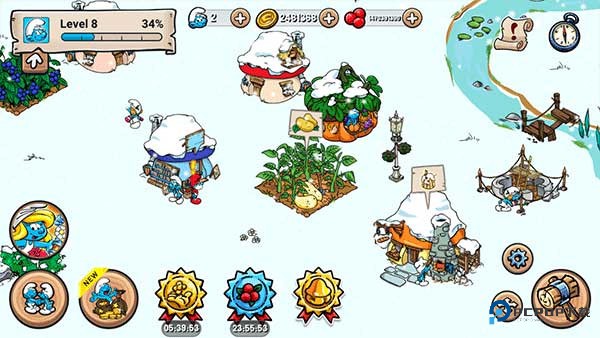 蓝精灵村庄汉化版(SmurfsVillage)是采用卡通画风的村庄模拟经营建设游戏。玩家将与可爱的蓝精灵主角,一起完成搭建任务。蓝精灵村庄中文版下载可以自由的建造各式各样的建筑物,比如住房、农作物、面包房等,同时只要通过点击屏幕就可以开始种植自己的作物。玩家需要从最基本的种植果蔬开始,等待果蔬成熟收获,获得资金来建造各种各样的建筑。