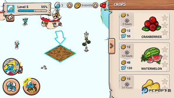 1、首先打开蓝精灵村庄最新版安卓版,点击土地进行种植;