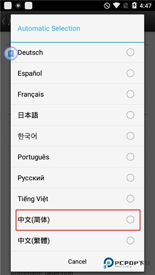 3、拉到下面,选择“中文(简体)”即可。软件需要清除后台进程,重新运行即为中文版。