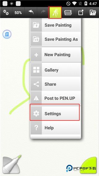 1、在本站在安装并打开ArtRage中文版app,进入软件首页即可直接开始创作,点击设置,用户可以设置笔刷的各种数值。