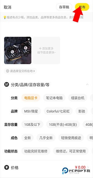 最后点击【价格】输入发布的价格,选择右上方的【发布】就可以了。