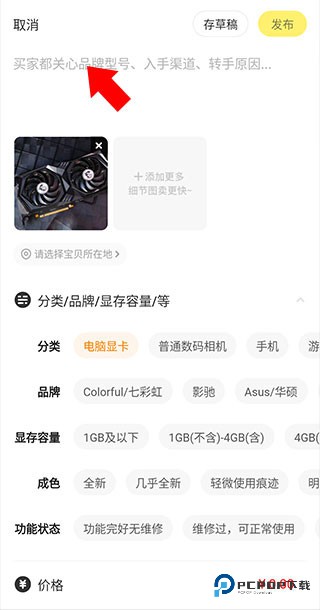 点击上方的【描述框】,输入对当前商品状况的描述信息。