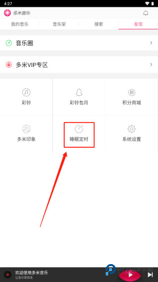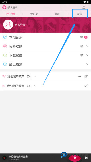 2、当您成功登录多米音乐主页面后,点击界面右侧上角处的“话筒”样本图样,便可立即进入到歌曲识别功能内部。