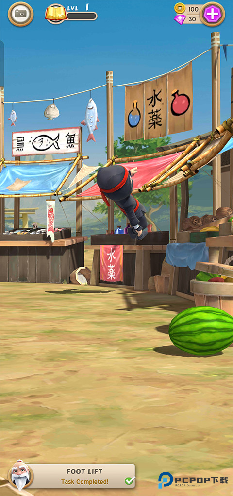 任务3:拉着忍者往右边走,拉快点可以使他摔跤哟。