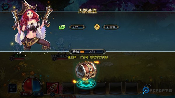 3、战斗奖励:胜利后获得宝箱,可抽取奖励。