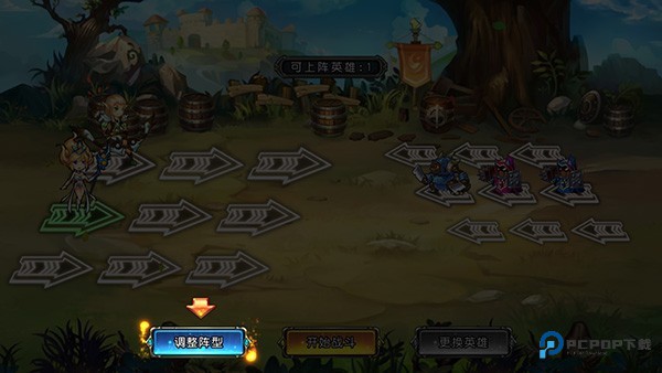 2、战场策略:通过调整阵型,将角色摆放在合适位置,开始战斗。
