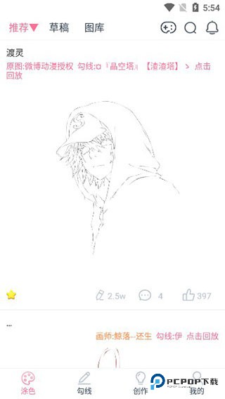 3、发现:在这里你可以发现别人分享的一些不错的原稿,从而选择自己喜欢的内容进行绘画!