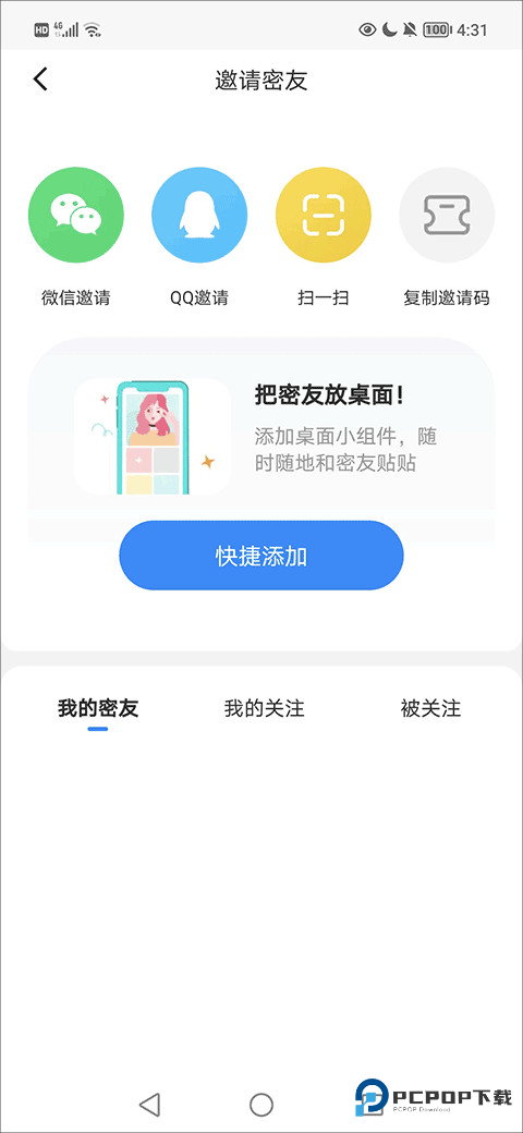 2、然后,在邀请密友界面找到并点击“快捷添加”选项;
