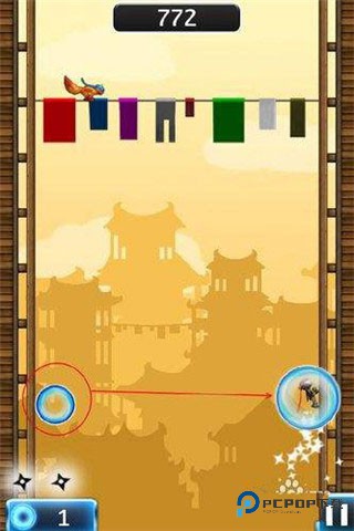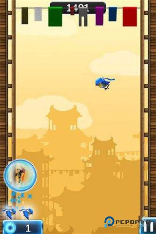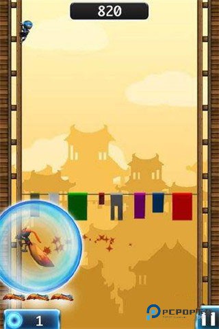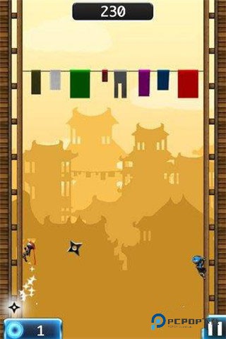 1、操纵忍者飞檐走壁,不断攀爬,注意躲避其中的障碍物,消灭各种敌人;