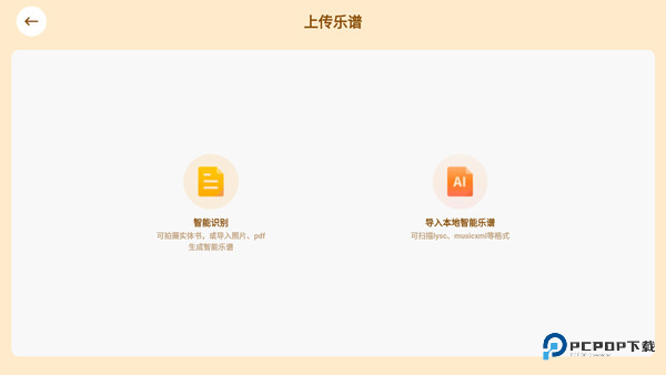 4、进来之后有俩个方法上传乐谱“智能识别”和“导入本地智能乐谱”都可以上传