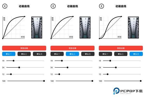 1、记得动画壁纸最新版有三种壁纸动画曲线模式,下面是软件的模式对比图: