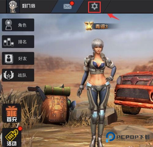 1、首先,打开求生之战游戏主程序,在页面上方点击设置按钮,如图所示