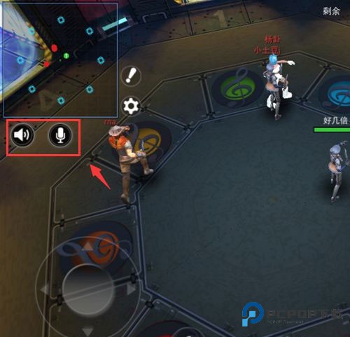 7、进入游戏后,就能看见声音和语音按钮,可以随时关闭和开启,如图所示