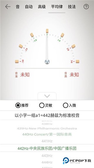 琵琶、三十六簧高音笙、三角钢琴、扬琴,共4种基准音模式。