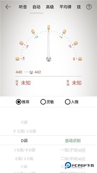 可选择“自动识别”、或“手动按弦号识别” (即手动选择1-4弦中的任意一根弦)