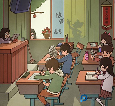 3、如果不是历史作业丢了,那他为什么那么慌张?点击课桌上两份相同的【作业】。