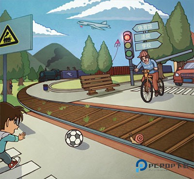 5、点击正在捡足球的小朋友,就知道他为什么要闯红灯了。