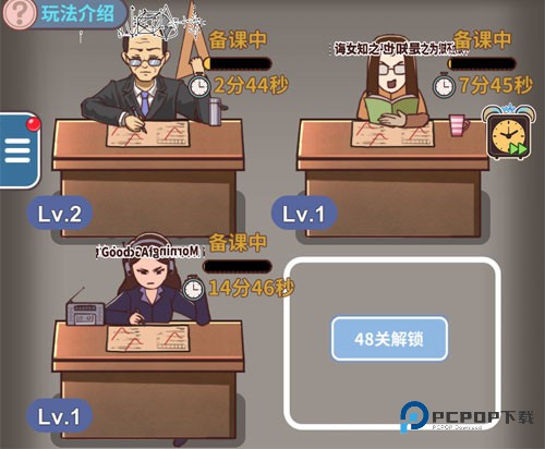 (1)在办公室中通过备课来获取备课点,然后备课点可以升级老师的等级。