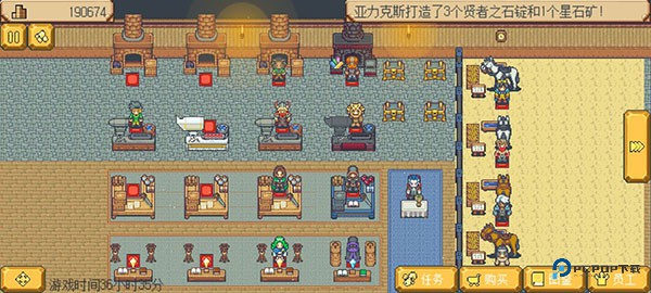 武器店物语中文版是一款经营类像素风的RPG冒险游戏,在游戏中玩家将成为一个武器店的老板,玩家需要雇佣更多的员工来进行武器的打造,与此同时你还可以选择培养不同的员工,并让他们前往各类挑战场景,收集更多的材料用于武器装备的打造。